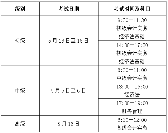 会计资格考试时间、批次如有调整,将另行通知。
