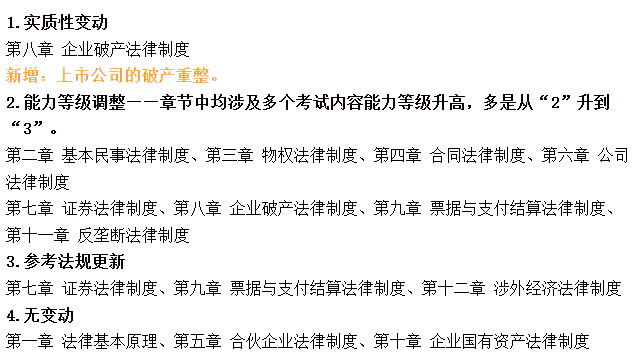 2026年注会《经济法》大纲整体变动不大,主要是第八章新增了“上市公司的破产重整”,其余变动体现在考试内容能力等级的调整,以及参考法规的更新。