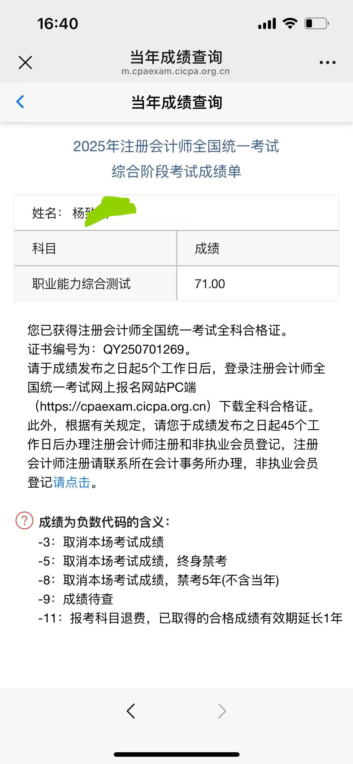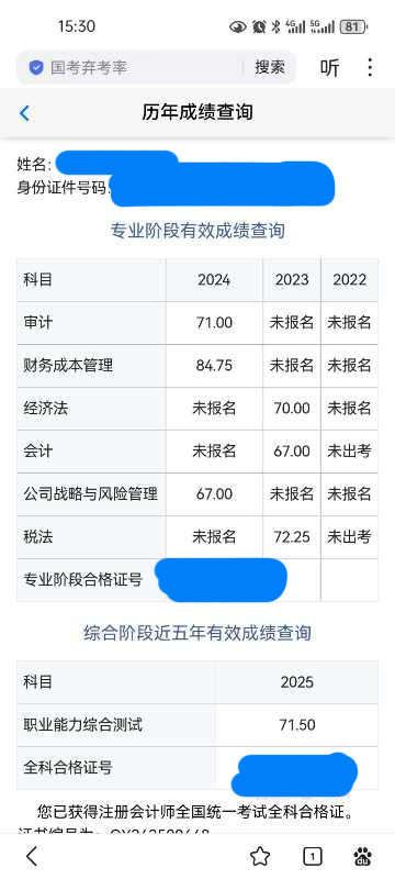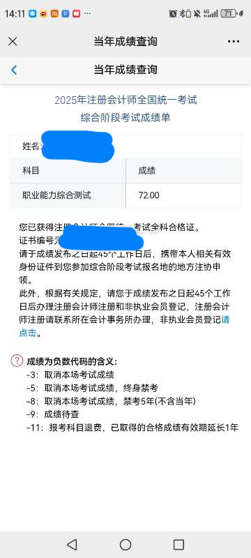 综合顺利通过,注会完美收官!可喜可贺!